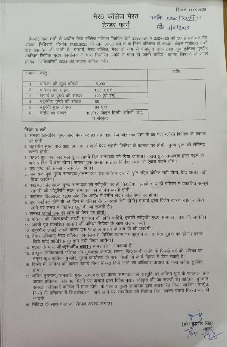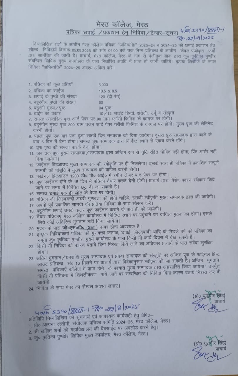 कॉलेज पत्रिका छपाई / प्रकाशन हेतु निविदा / टेंडर सूचना